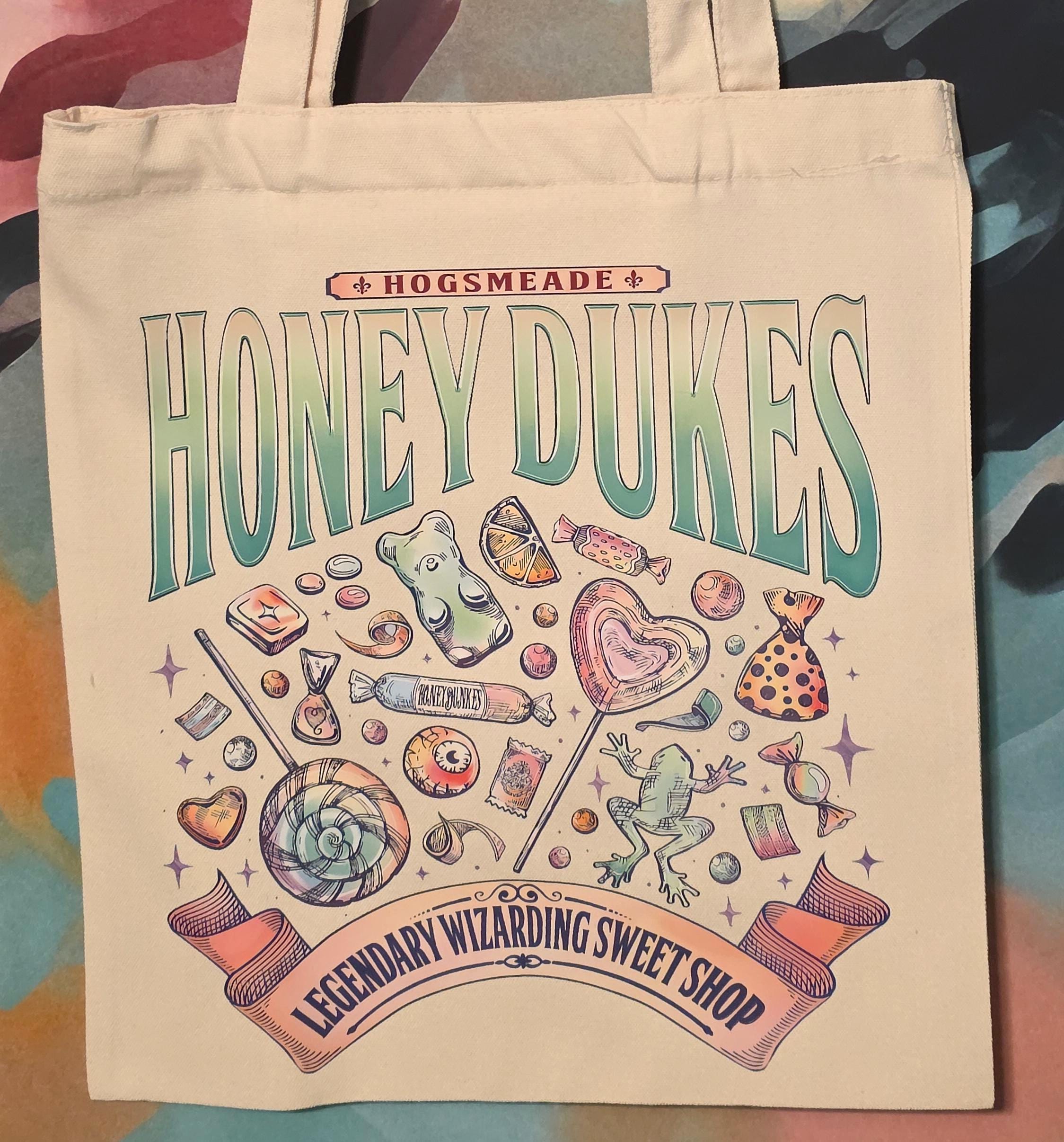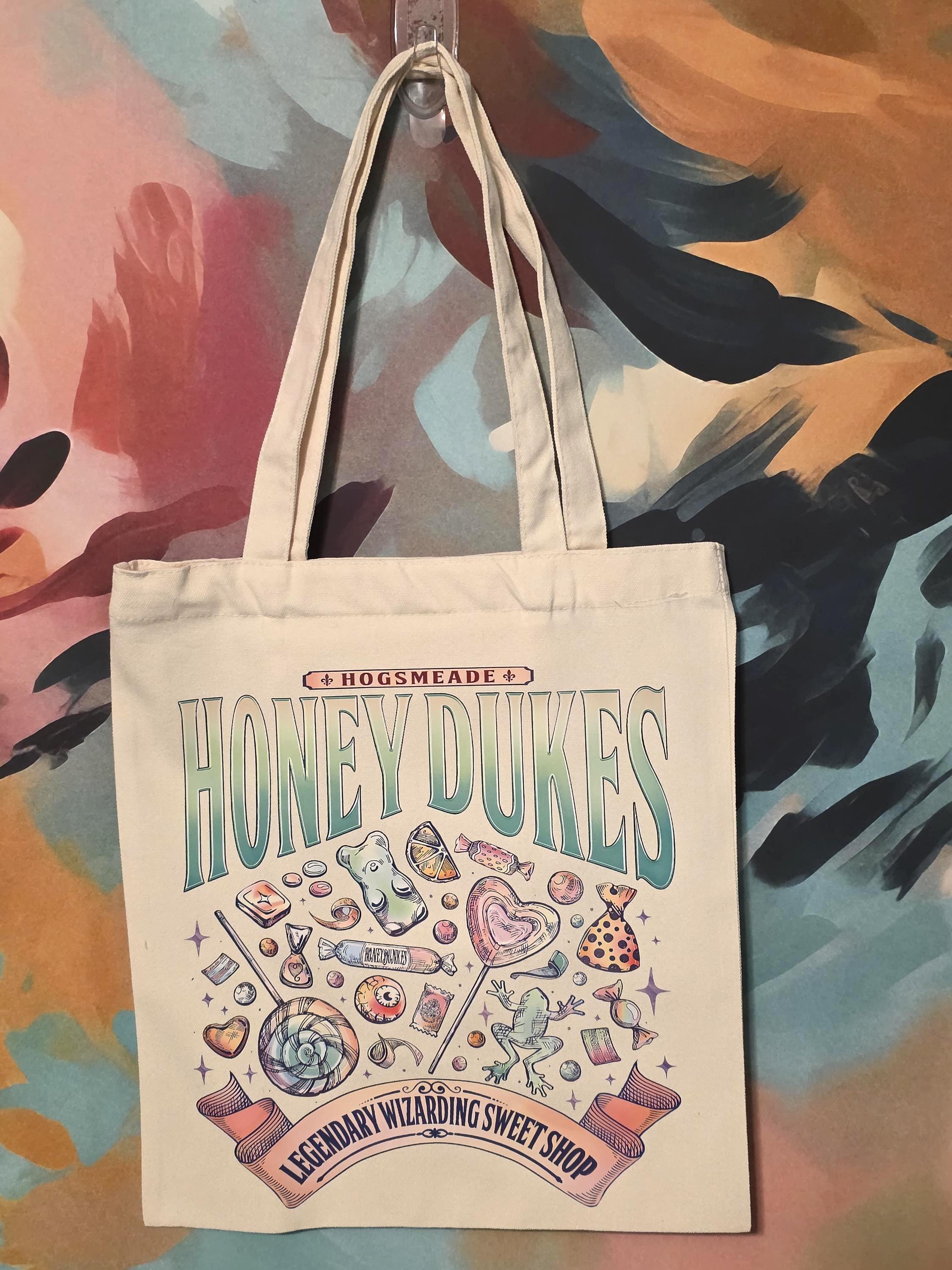 This is a 13x15 canvas tote bag with an interior pocket and magnetic closure. Great for taking your favorite book on the go - but it can hold lots of other stuff, too! Durable canvas and a super fun print!